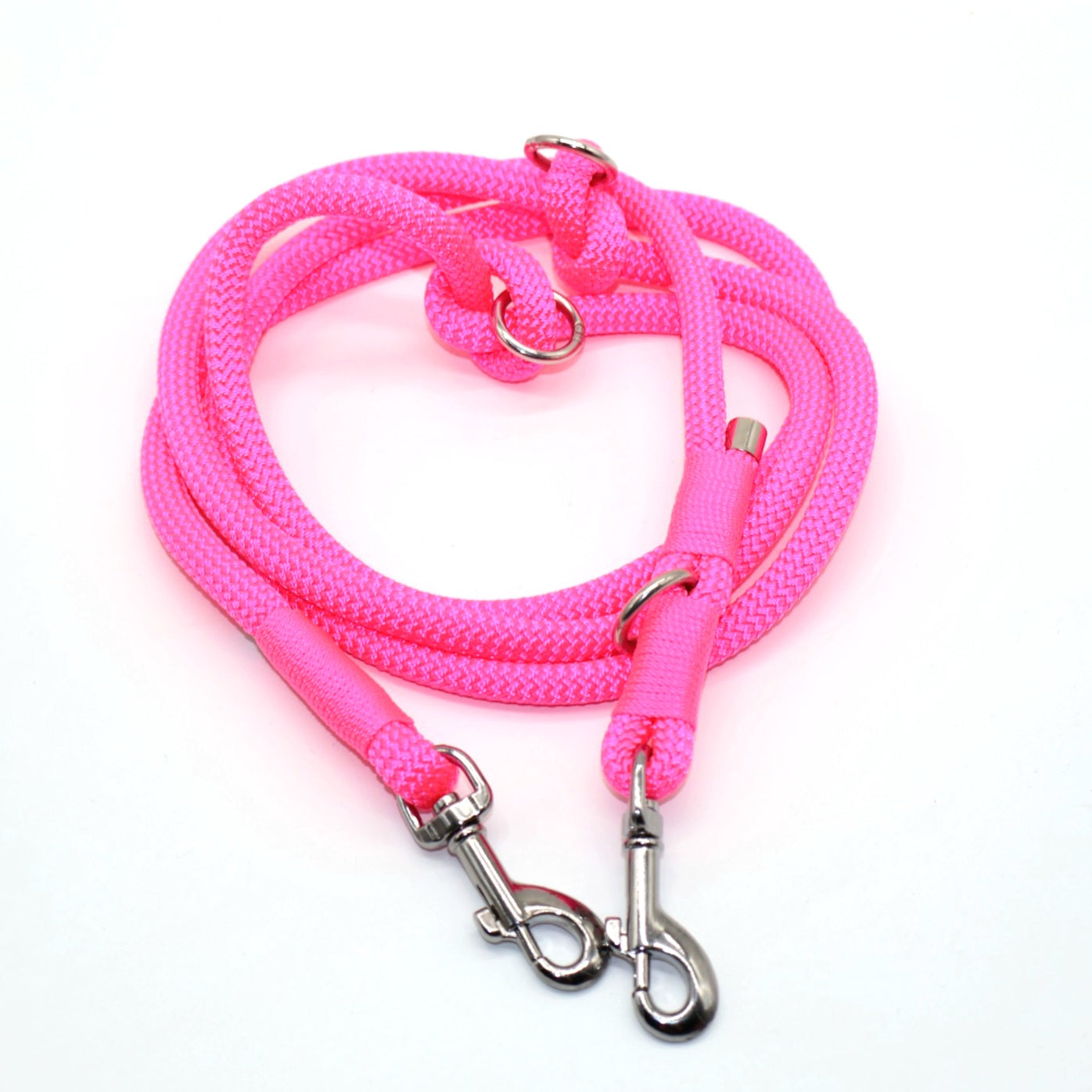 Die Leinen sind mit zwei Ringen ausgestattet, die entlang der Länge der Leine verschoben werden können.